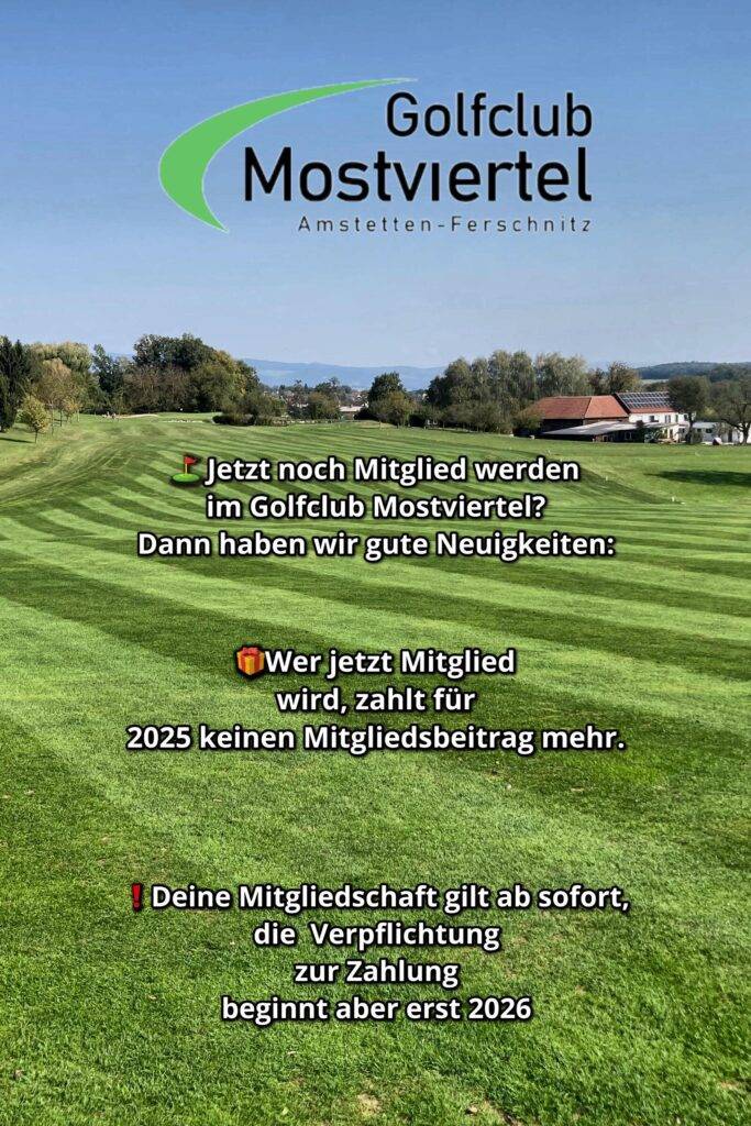Aktion – Greenfee Golf-Basic Mitglieder: 10er Block (18 Löcher) € 300,- (die Greenfees müssen 2025 verbraucht werden – Restbestände verfallen mit Ende der Saison 2025!) Einzelpreis Greenfee 18 Loch € 60,- Einzelpreis Greenfee 9 Loch € 35,- Aktion – E-Cart Miete für Mitglieder: 10er Block € 350,- (muss 2025 verbraucht werden – Restbestände verfallen […]