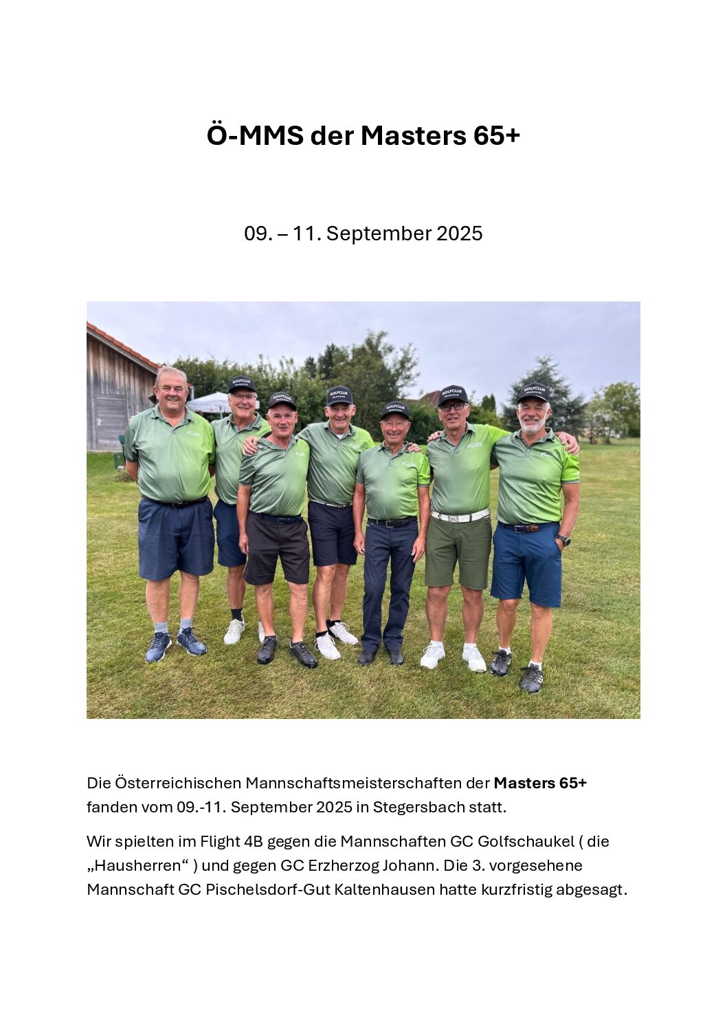 Die Österreichischen Mannschaftsmeisterschaften der Masters 65+ fanden vom 09.-11. September 2025 in Stegersbach statt.