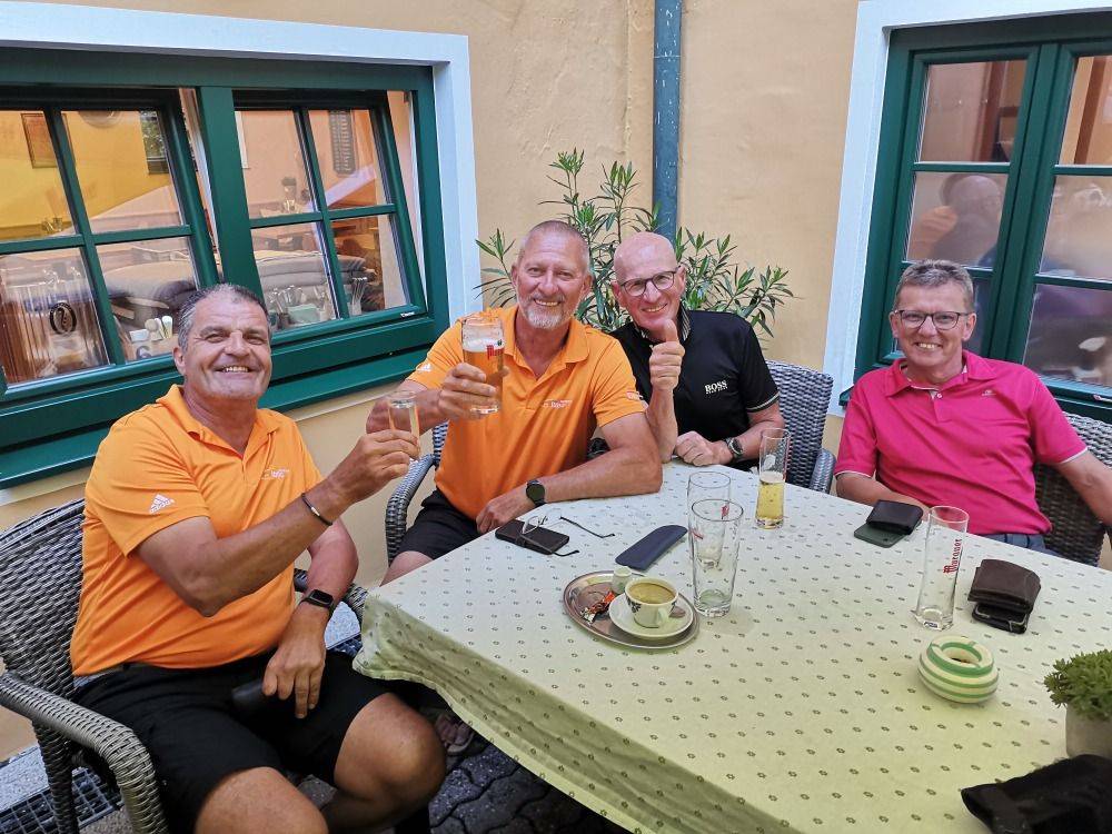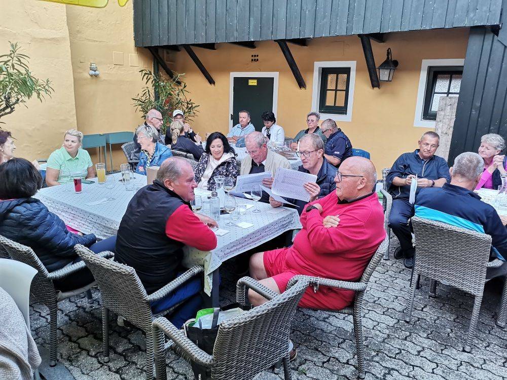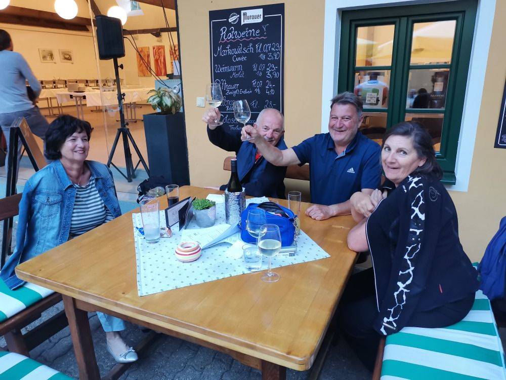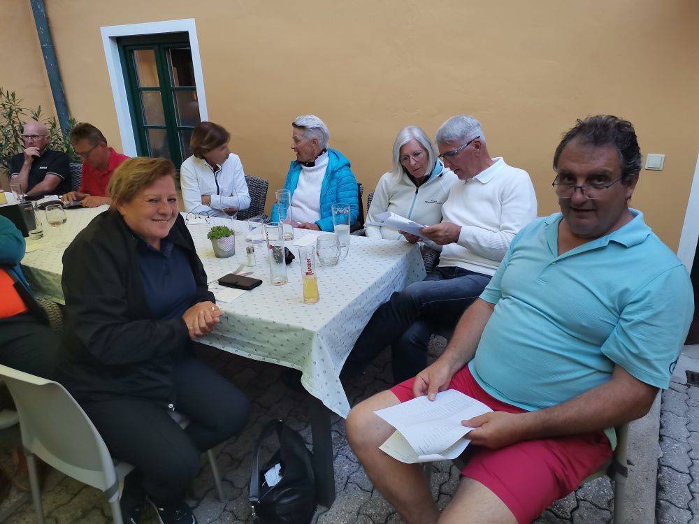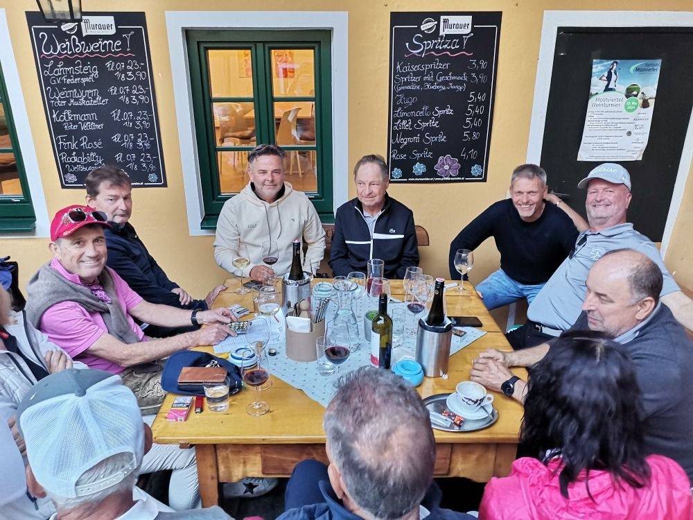 Dabei wurden unsere Turnierteilnehmer auf der Runde bei sonnigem Wetter auf einigen Stationen mit verschiedensten Weinen von den Weingüter Seppelbauer, Lahrnsteig, Kolkmann und Weinwurm verköstigt.